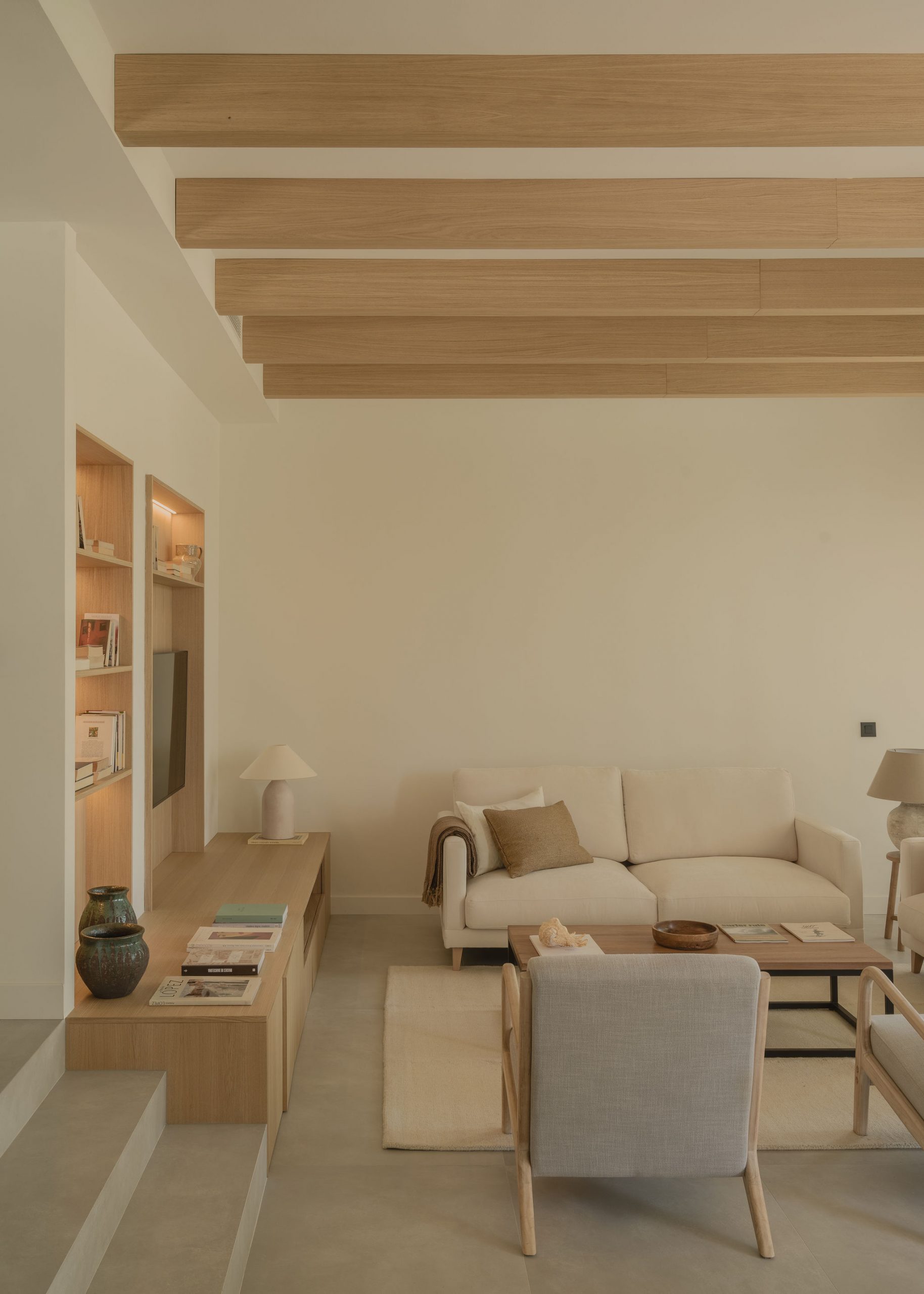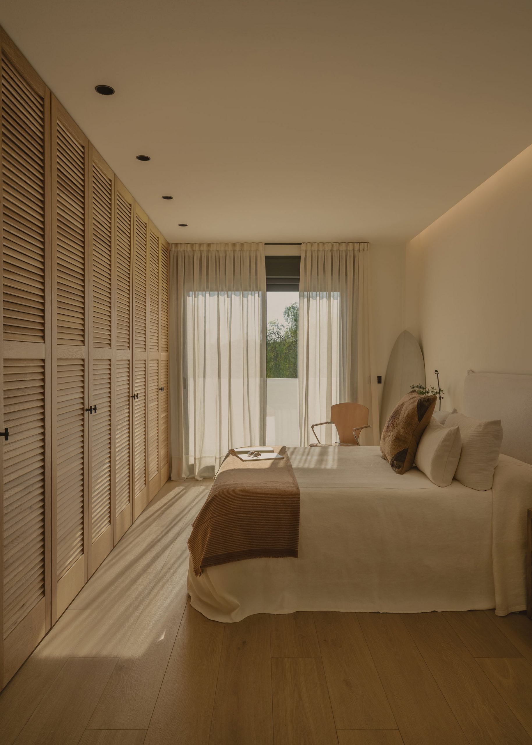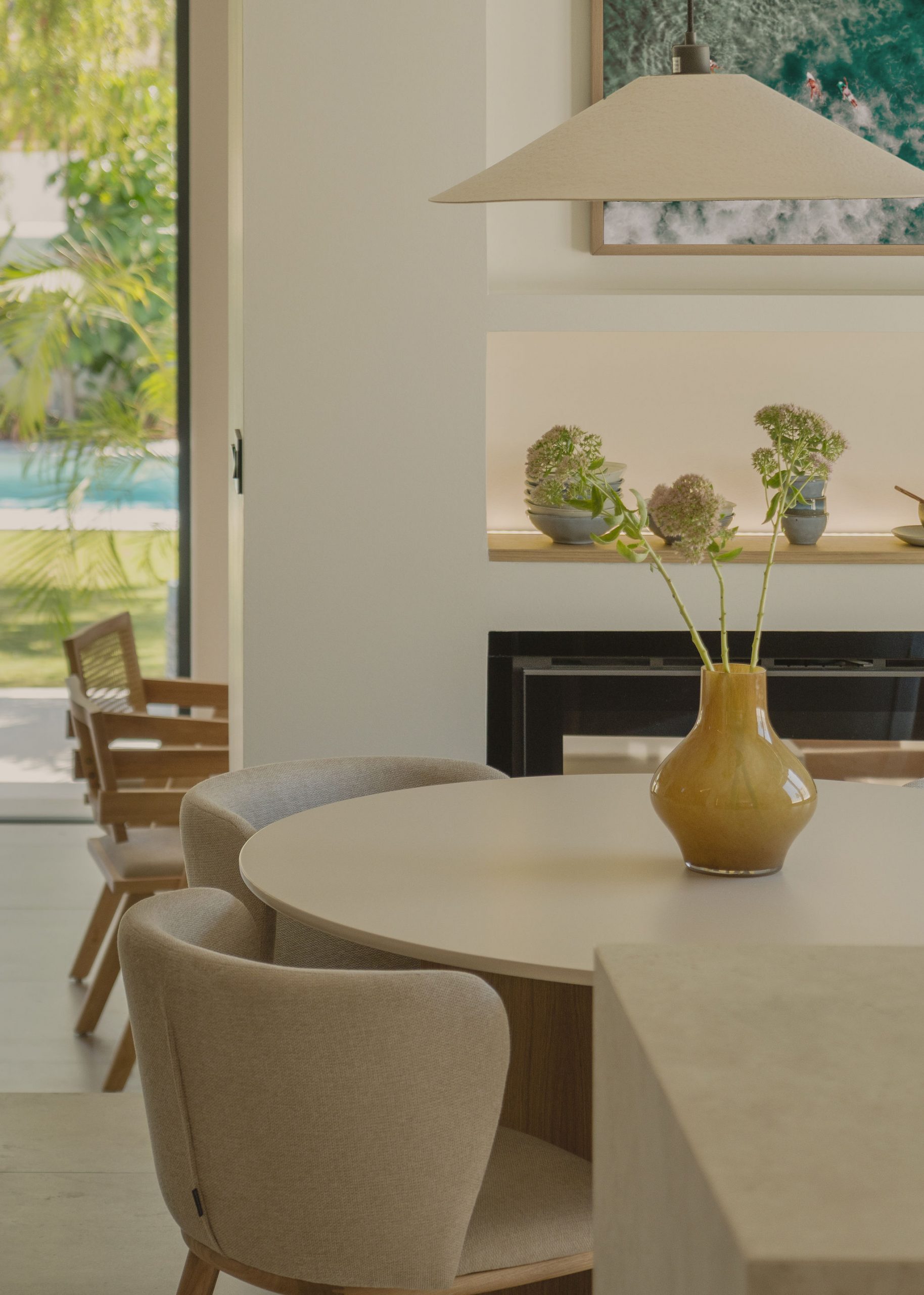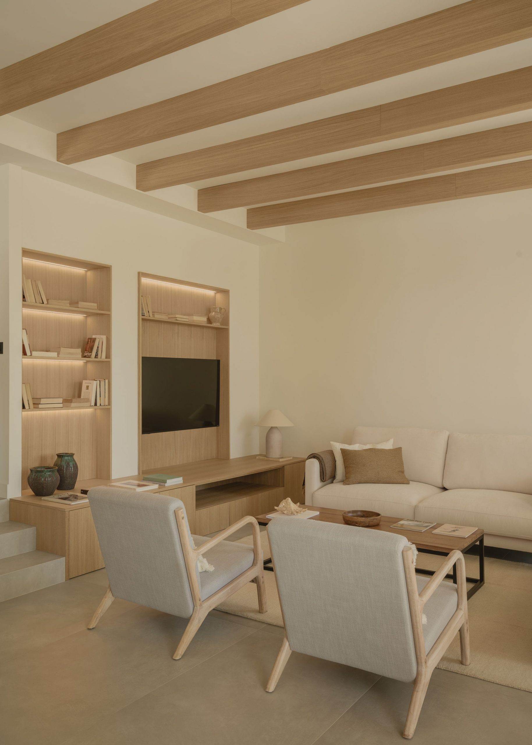 Reforma integral de vivienda unifamiliar aislada. Con un marcado estilo mediterráneo y tintes tropicales, la intervención busca potenciar la relación entre la arquitectura y su entorno natural. La conexión con el mar y el concepto de “slow life” fueron el punto de partida del diseño: los reflejos del agua y los tonos verdes del jardín se integran en el interior a través de una paleta cromática suave y materiales naturales que refuerzan la sensación de calma y frescura. La intención principal fue abrir los espacios para conectar el interior con el exterior, favoreciendo la entrada de luz natural en todas las estancias y generando una continuidad visual entre las zonas de día, el porche y el jardín. El resultado es una vivienda luminosa, relajada y en sintonía con su entorno costero —un refugio contemporáneo donde la luz, el mar y la vegetación se convierten en protagonistas.