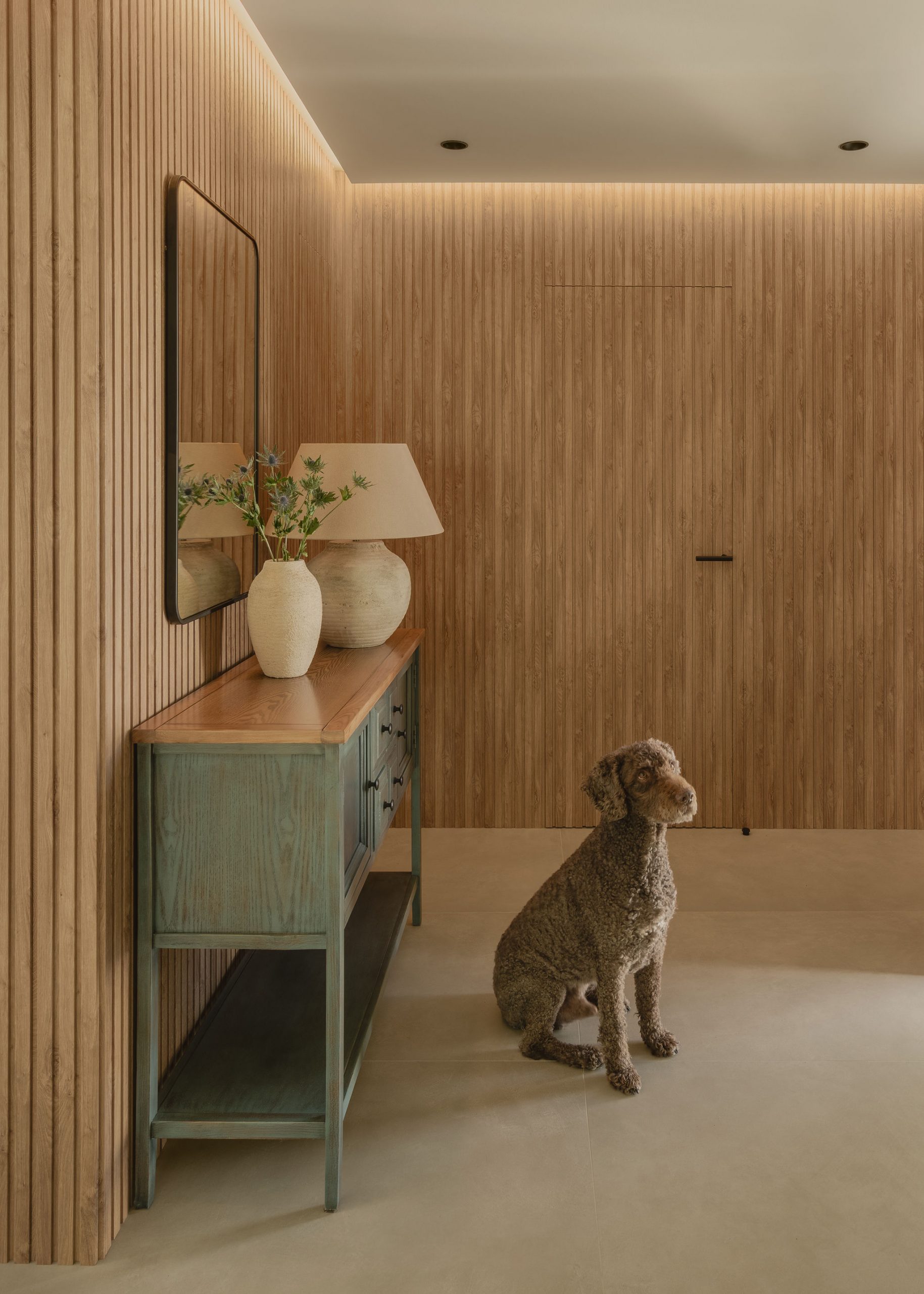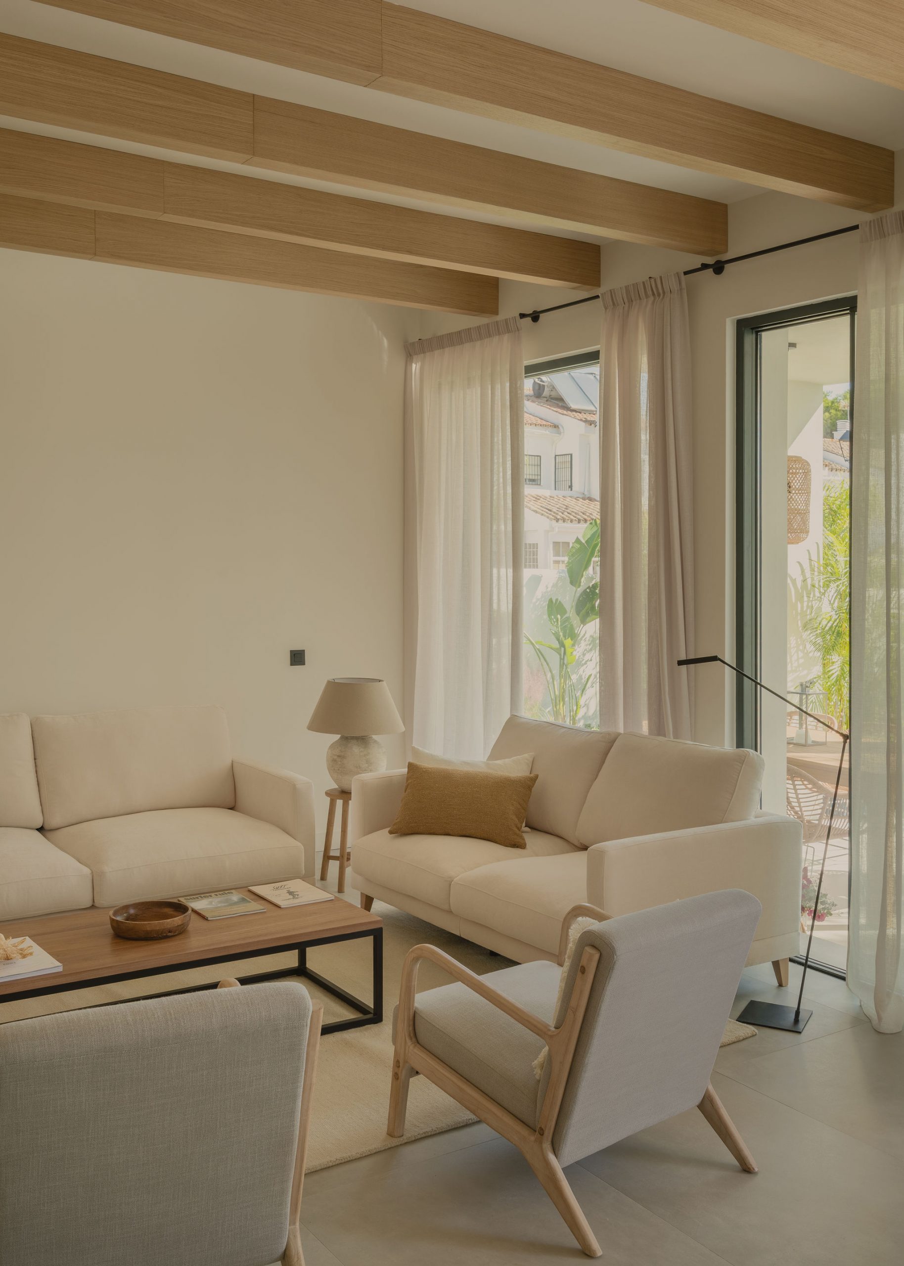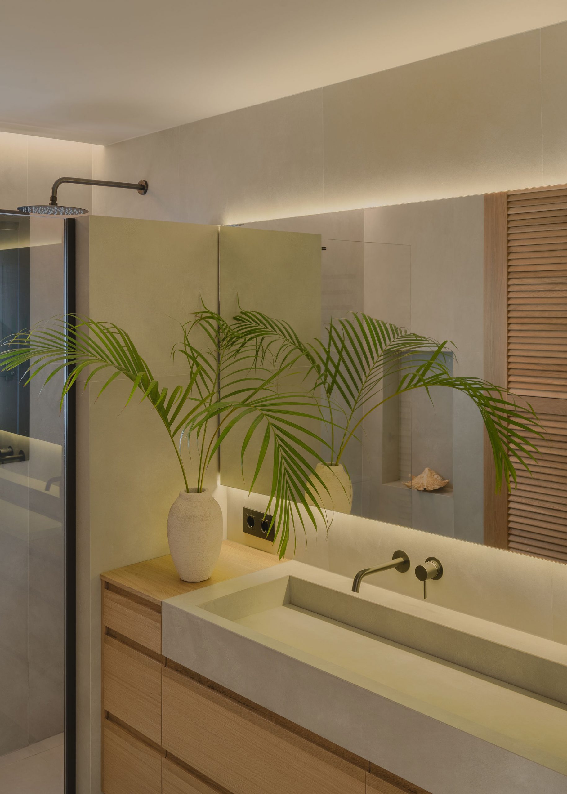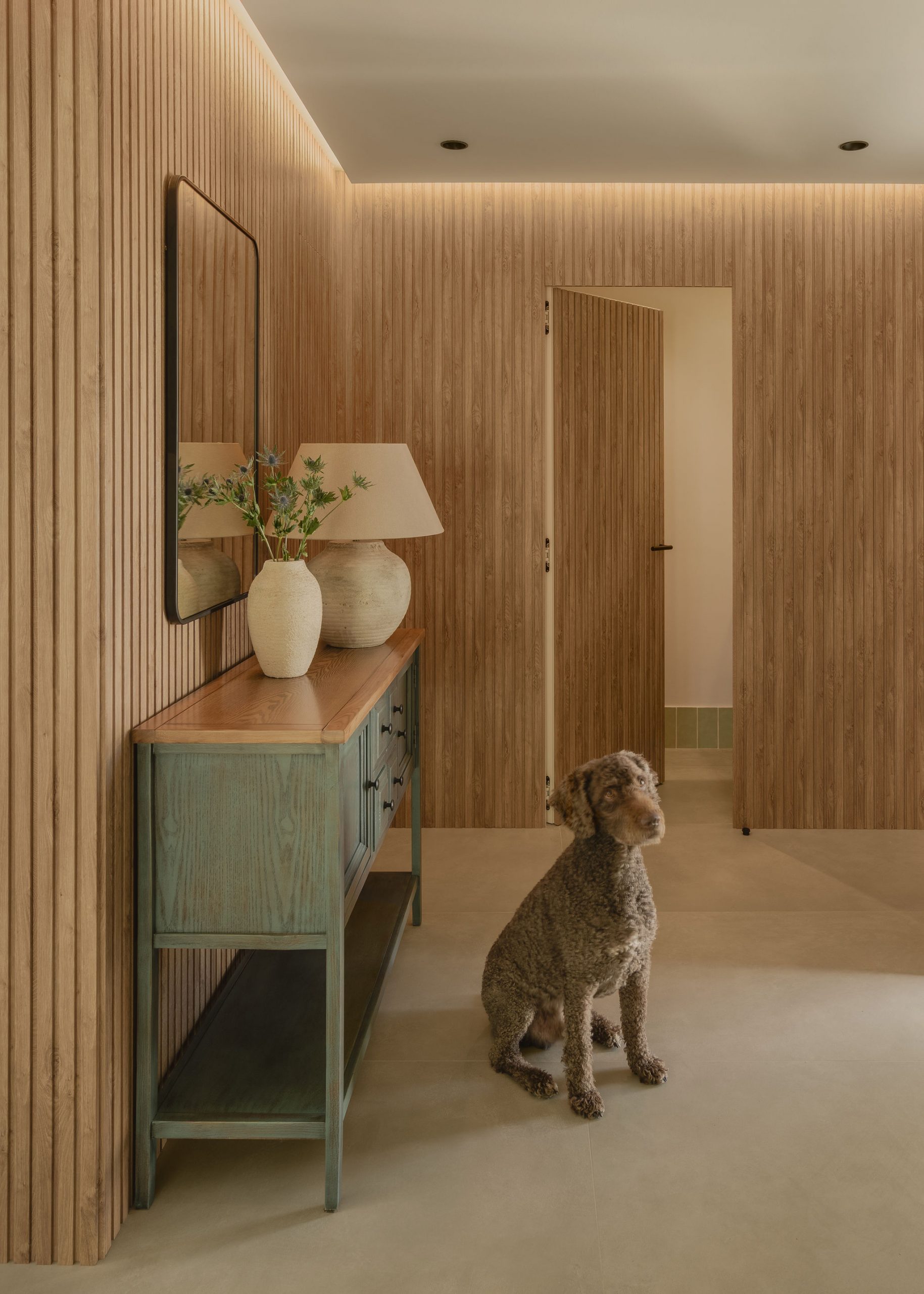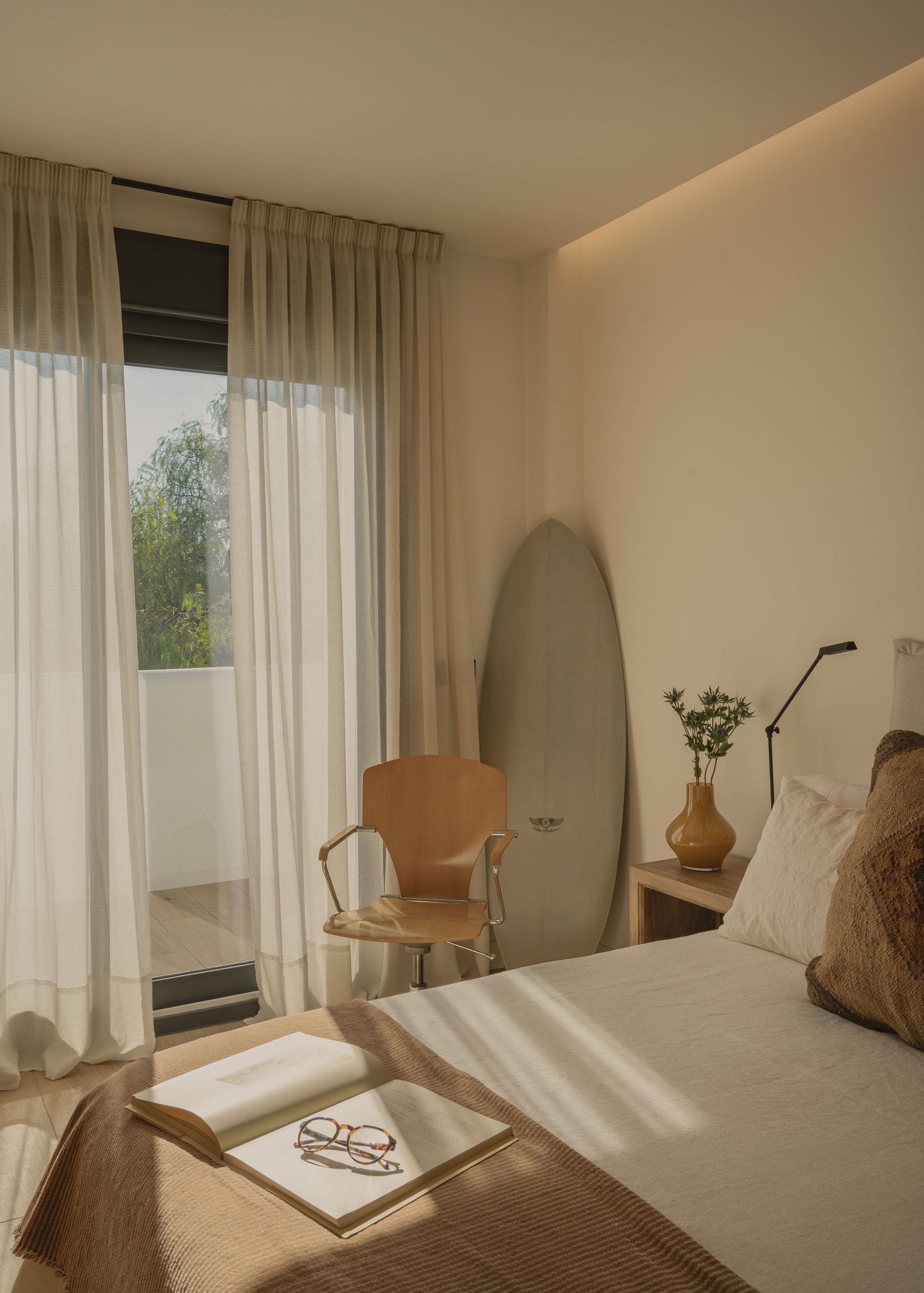 Reforma integral de vivienda unifamiliar aislada. Con un marcado estilo mediterráneo y tintes tropicales, la intervención busca potenciar la relación entre la arquitectura y su entorno natural. La conexión con el mar y el concepto de “slow life” fueron el punto de partida del diseño: los reflejos del agua y los tonos verdes del jardín se integran en el interior a través de una paleta cromática suave y materiales naturales que refuerzan la sensación de calma y frescura. La intención principal fue abrir los espacios para conectar el interior con el exterior, favoreciendo la entrada de luz natural en todas las estancias y generando una continuidad visual entre las zonas de día, el porche y el jardín. El resultado es una vivienda luminosa, relajada y en sintonía con su entorno costero —un refugio contemporáneo donde la luz, el mar y la vegetación se convierten en protagonistas.